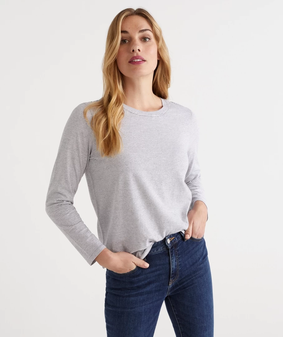 This is 100% Australia Cotton long sleeve t-shirt is an essential this season with its ideal fit and classic stripe print.