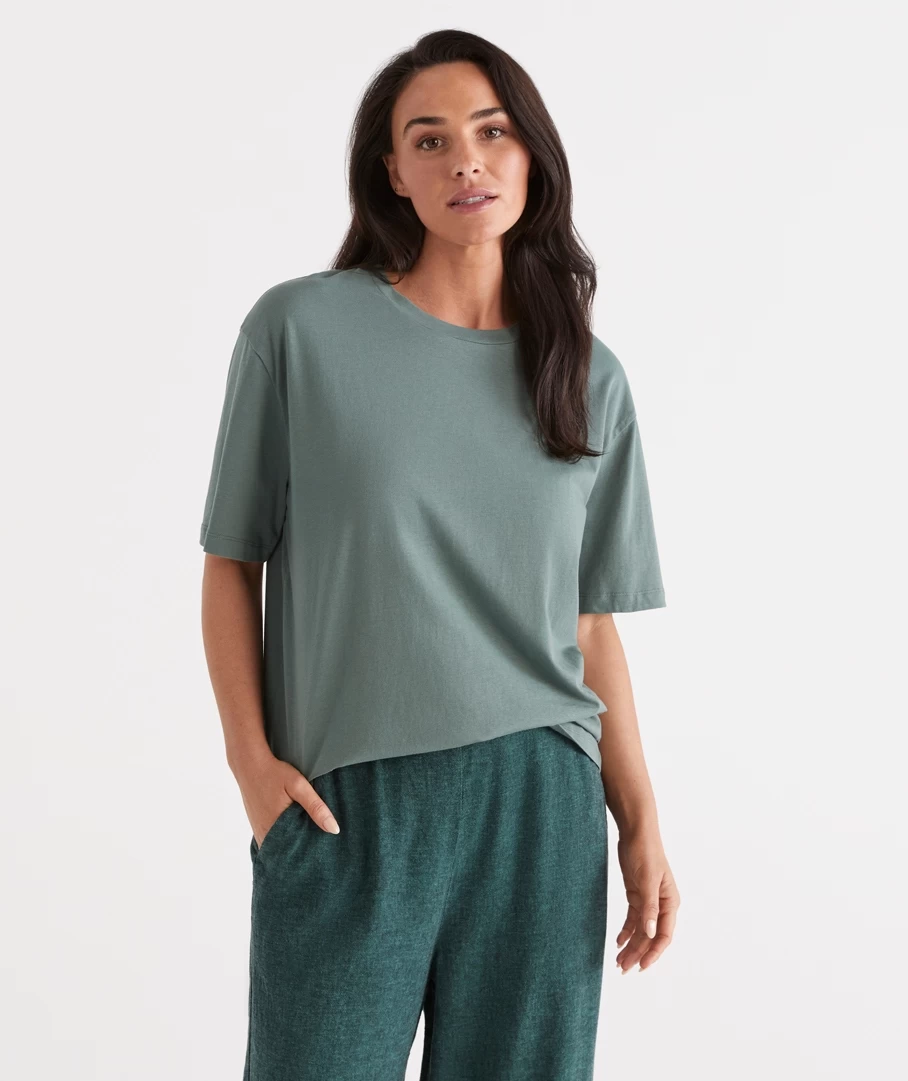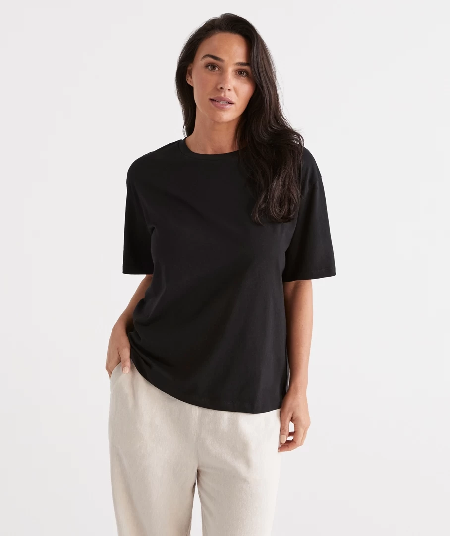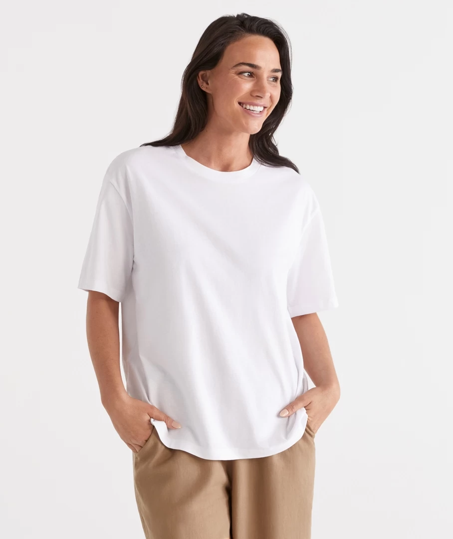 This short sleeve top is tailored for a flattering, comfy and relaxed fit. It can be worn as a relaxed look or dressed up. Making it an item you can almost grab every day of the week.