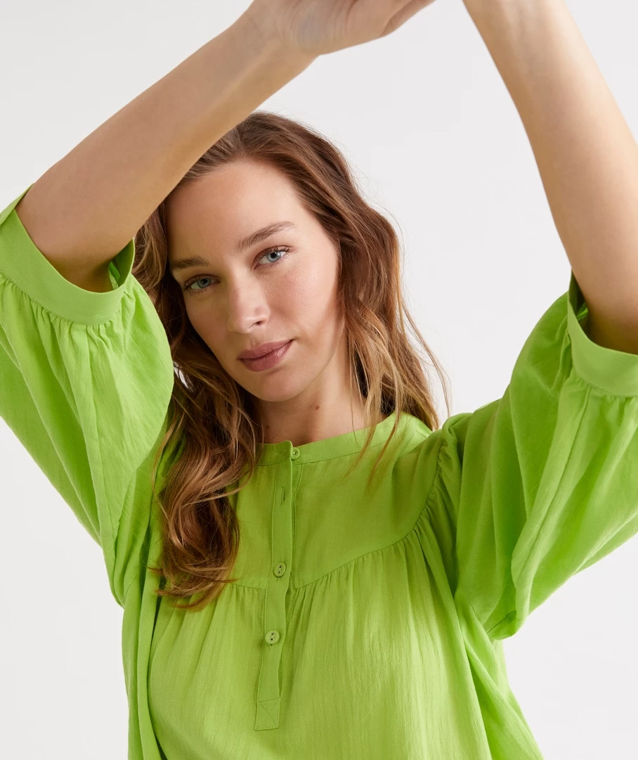 -¾ Blouson sleeve styling