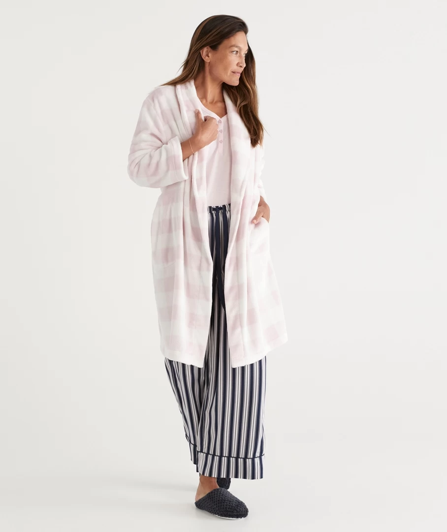 A new super soft fleece gown. Designed in Melbourne, our Check Print Gown will be sure to drift you into the coziest of slumbers.