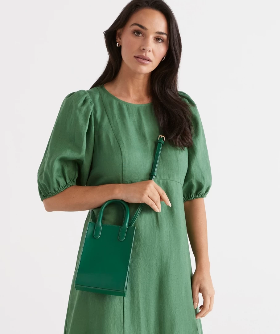 The Emerald top handle bag is a chic, mini yet versatile bag, for both casual days or big events, in a rich emerald tone, it’s the perfect bag to complete any outfit