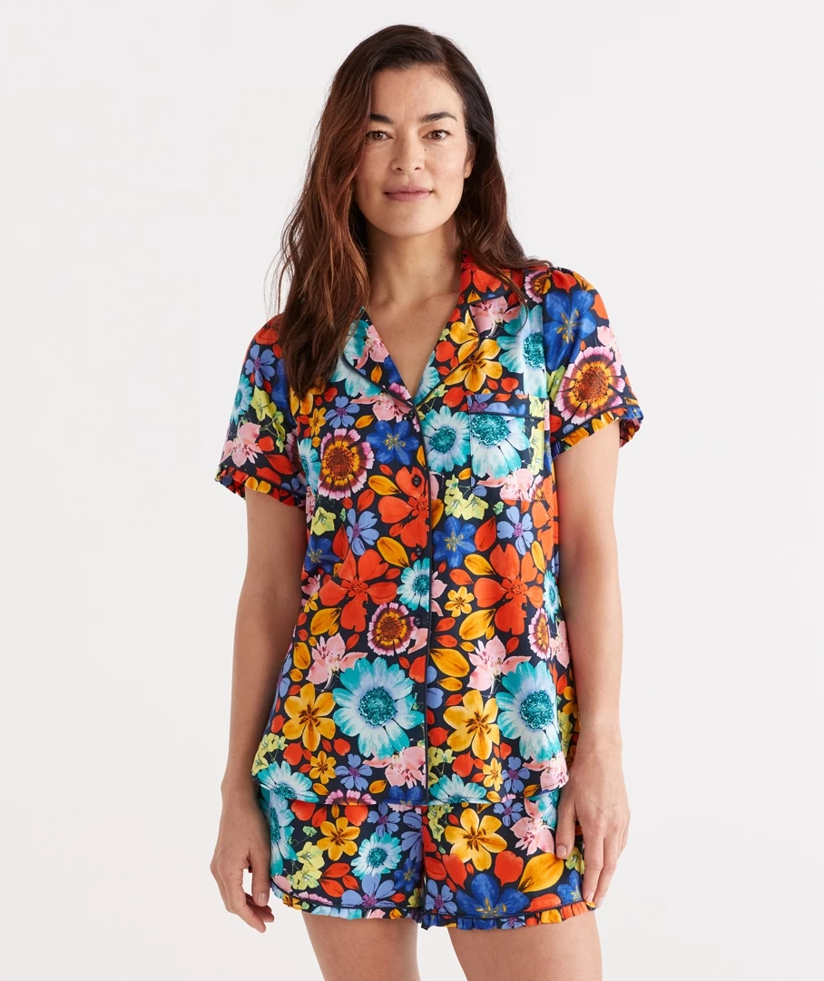 Designed in Melbourne, the Floral Shortie Set showcases our exclusive hero print this month. Crafted from a soft viscose cotton fabrication, this style sits softly against for the perfect night sleep.