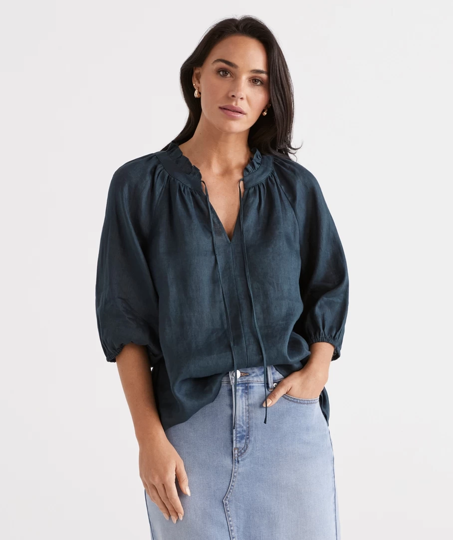 Our 100% Linen Notch Neck Blouse is the ultimate staple for the on the go woman. Designed in Melbourne, this blouse is perfect to take from day to night.