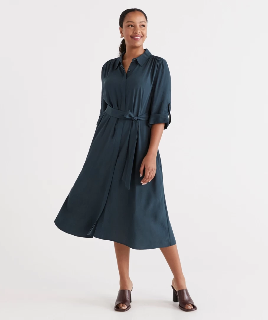 Elevated ease are the two words that come to mind with the Midi Shirt Dress. Crafted from a sustainable 100% Ecovero fabrication, this designed in Melbourne style is set to take you from Desk to Dinner in style.