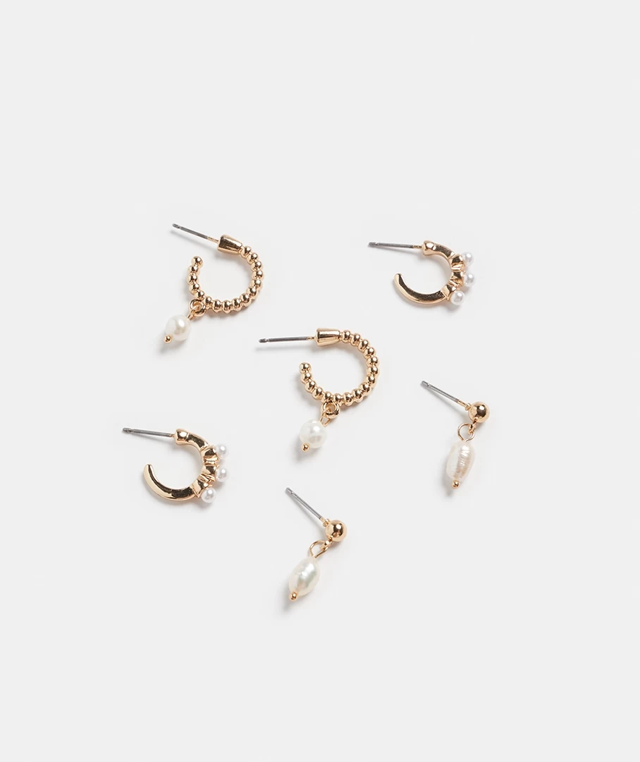 Get your hands on our beautiful Pearl Gold 3 Piece Earring Set, easy to wear all together or each individually.