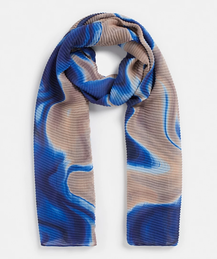 Our pleated, sapphire marble scarf is the it scarf this season. With gorgeous tones of blue and cream combined in this stunning marble print, it’s a wardrobe must.