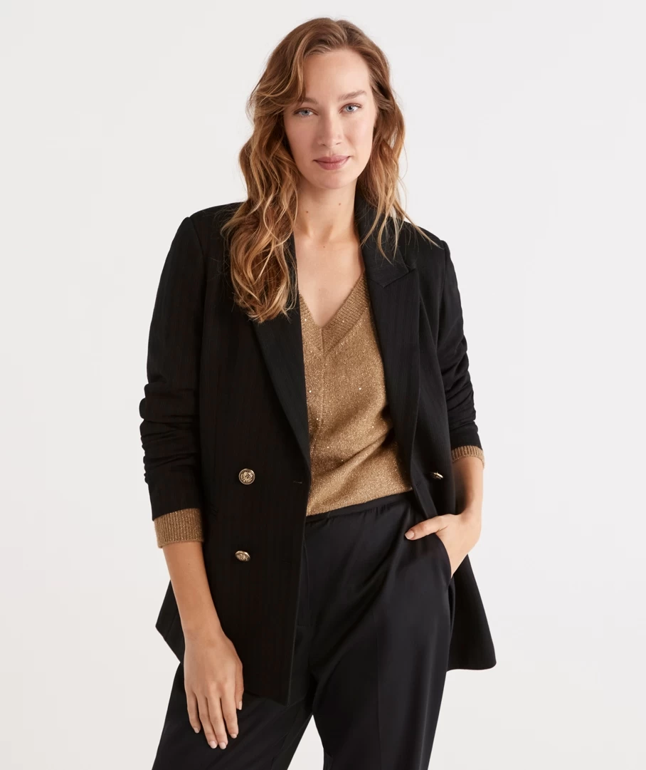 Our classic Ponte Blazer is back by popular demand. Perfect for the woman on the go, this blazer will elevate and carry any outfit from work to dinner. With stretch fabrication and tailored detailing, this is a staple in any wardrobe. Designed in Melbourne