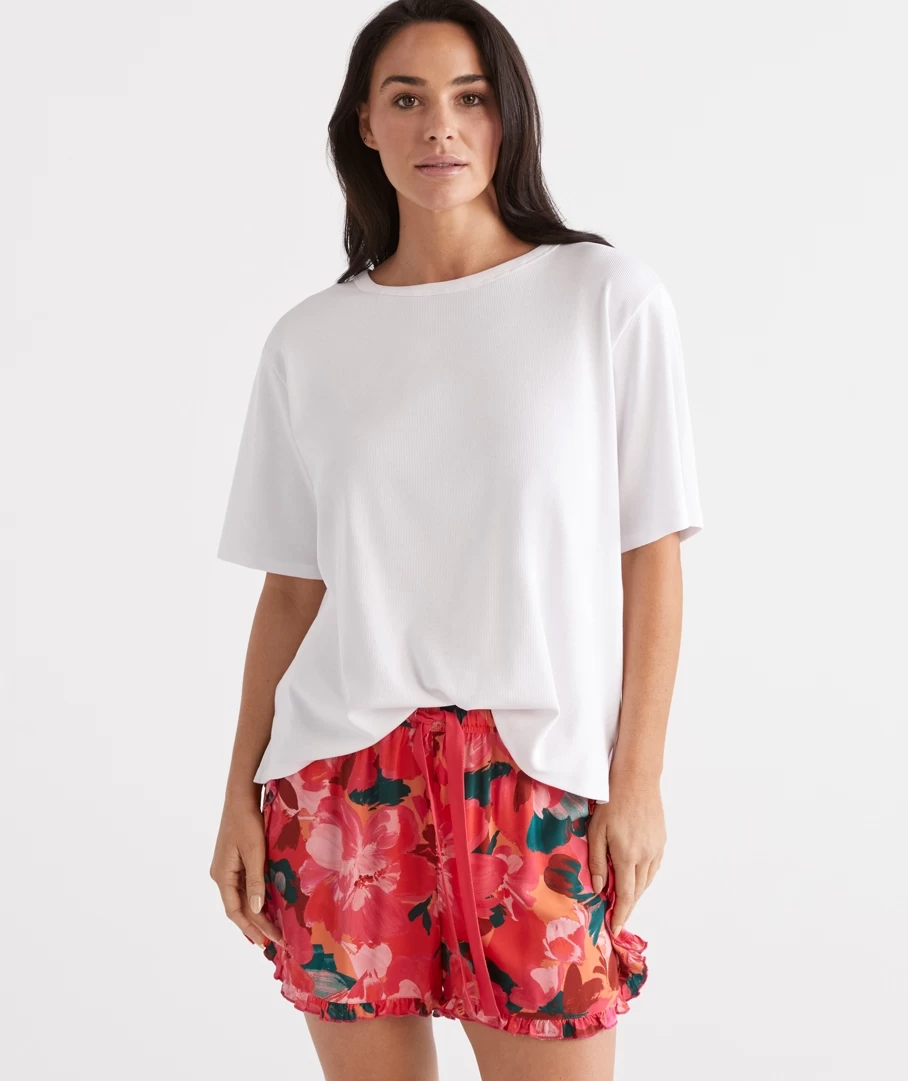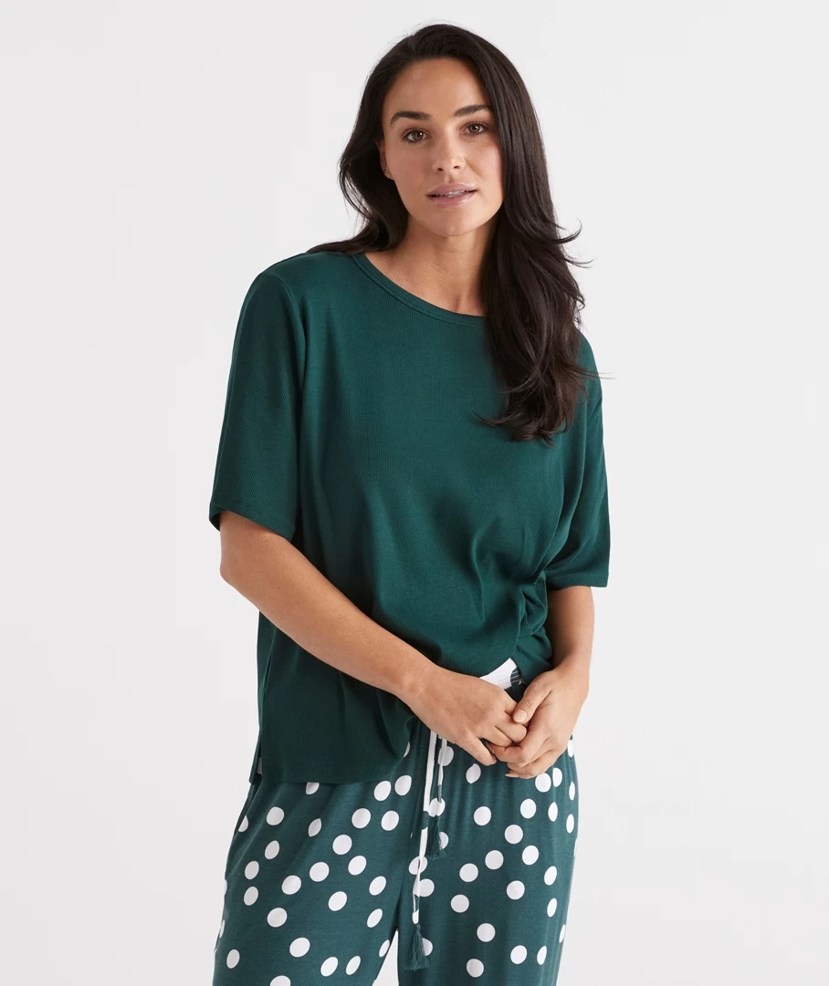 Crafted in a blended Australian Cotton Elastane, our new relaxed rib t-shirt is breathable, lightweight and comfortable – the perfect home lounge piece. Pair this back with our PJ Pants this month for a complete look.
