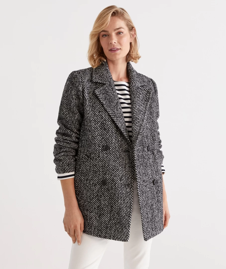 – Double breasted button closure
