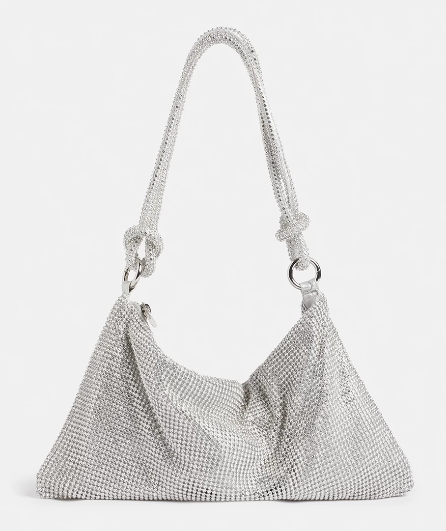 The silver glow mesh bag is the ultimate accessory for your next event. Encrusted with silver crystal embellishments, this piece will make a statement and uplift your outfit.