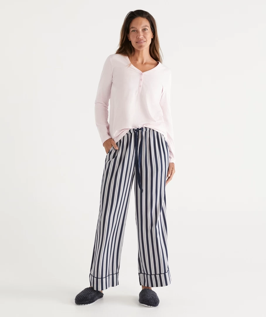 Crafted from soft 100% viscose, our new wide leg pant showcases a new take on the classic stripe. Designed in Melbourne, this style sits softly against your skin and its relaxed fit makes it perfect to lounge in.